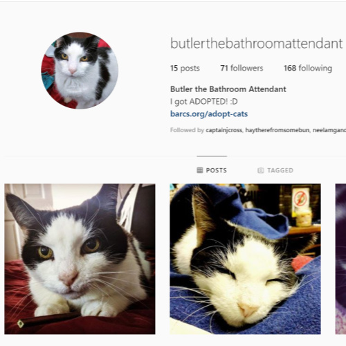 I set up and managed an Instagram account for a foster cat named Butler. This account improved visibility of a special needs cat that needed to find the perfect match for an adopter. Butler found his family and is happily living his best life.
